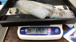 堺漁港で1キロ超のアオリイカ釣れたようです。