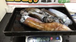 アオリイカ釣果 2/5 アオリイカの釣果 合計2840g 堺釣り場、ヤエン釣りにて