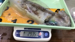 イカ釣果 先にばらしたヤエンと一緒に釣れたアオリイカ2,575g。