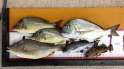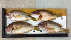 船釣りの釣果 メイチダイ爆釣。1時間半で合計35匹ほどの釣果。串本沖で船釣り。8月20日日曜日。谷村様。