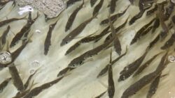 アオリイカ生態、釣り情報関連 アオリイカ、釣太郎みなべ店水槽で泳いでいます。【イカ釣り師必見】
