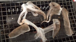 魚料理 専用道具を使い、アオリイカの活締め方法のご説明。〆ると、真っ白になるので直ぐにわかります。