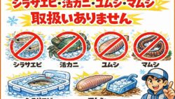 お知らせ シラサエビ・活カニ・ユムシ・マムシは取扱しておりません。