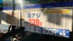 お知らせ 【25日まで】活アジ10匹買うごとに200円クーポン券をプレゼント中。タバコ以外の商品に使えます。