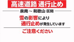 お知らせ 9(月)午前2時半現在、泉南から和歌山まで、雪で高速道路通行止めのようです。