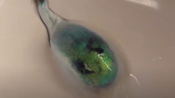 お知らせ これがアオリイカの墨袋。光沢がありグリーン掛かっていますが、この中は真っ黒。