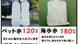 お知らせ 海水氷とペット氷。共に中身は海水を凍らせたもの。これらは釣太郎オリジナル。