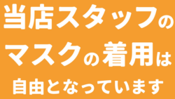 お知らせ 当店スタッフのマスク着用は自由 となっています。