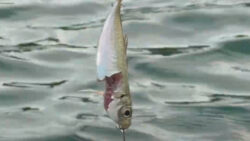 お知らせ 流れに逆らうように整然と、綺麗に並ぶようにして泳ぐアジ。アオリイカ釣り用。