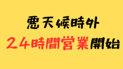 お知らせ 24時時間営業で、昼の休店がなくなりました。天気が崩れる時は臨時休業致します。