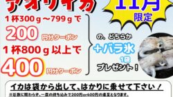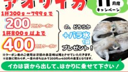 お知らせ 【11月限定】アオリイカ釣果持ち込みで最大400円クーポンGET!さらにバラ氷もプレゼント!釣太郎のお得なキャンペーンが熱い!
