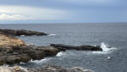 お知らせ 今朝の白浜は少し波が高く、 風もやや強く吹いていますが 、黒崎には釣り人がいます。