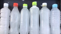 お知らせ リサイクルしたペット氷。中身は海水。1本120円。バケツの海水温度上昇を抑えるのにも使えます。