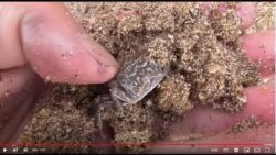 お知らせ 砂浜の穴に入っているスナガニ。これを掘り当てるゲームは、家族でやれば盛り上がります。