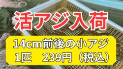 お知らせ 活アジ入荷しました!今回も14cmほどの小ぶりなアジです。秋イカ、のませ釣りに。