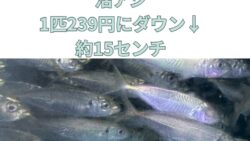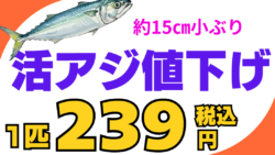 お知らせ のませ、ウキ泳がせ釣りに最適な約15センチ活アジあります。1匹239円(税込)