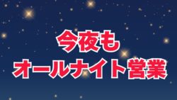 お知らせ 小雨がぱらつきそうですが、今晩も24時間営業中です。