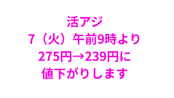 お知らせ アオリイカ釣り用の活アジ、7(火)より1匹239円に値下がりします。