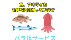 お知らせ アオリイカ・魚釣果のお持ち込み大歓迎 バラ氷サービスで鮮度キープ。釣太郎