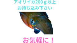 お知らせ アオリイカ200g以上お持ち込み下さい。バラ氷サービス。
