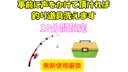 お知らせ 事前に一声かけて頂ければ、釣行後道具洗って帰れます。