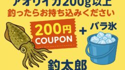 お知らせ アオリイカ200g以上で200円クーポン&バラ氷サービス|釣太郎持ち込みキャンペーン開催中