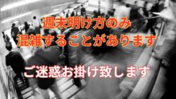 お知らせ 週末明け方時のみ、一時だけ混み合うことがございます。