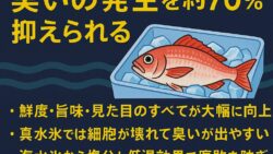 お知らせ 海水氷で保存すれば、魚の生臭いの発生を約70%抑えられる!