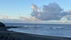 お知らせ 今日も良い天気で 暑くなりそうです 日置の海岸はウネリがあり 磯は白波が立っています。
