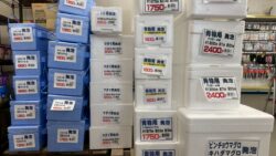 お知らせ 発泡クーラーボックス。小魚から50キロマグロまで、収納できる各サイズご用意しています。