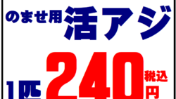 お知らせ のませ用活アジ240円。アオリイカ用は275円。