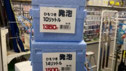 お知らせ 手軽で夏場によく売れるひも付き発泡クーラーBOX。ドリンクや食材を冷やすにも最適。