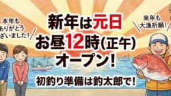 お知らせ 【年末のご挨拶】本年の営業は終了いたしました。2026年は元日正午よりオープン!初釣りの準備は釣太郎で