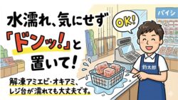 お知らせ 解凍エサは台の上に置いてOK。レジ台が濡れても大丈夫です!