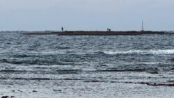 お知らせ 元旦に沖磯に渡り、初釣りを楽しむ人たち。2026年1月1日みなべ堺
