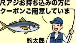 お知らせ 30センチの尺アジお持ち込み下さい。1匹に付き100円クーポン券進呈中。