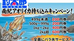 アオリイカ生態、釣り情報関連 この冬は異常!?南紀でアオリイカ好調。釣れたら気軽にお持ち込みください【全員バラ氷サービス】