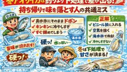 アオリイカ生態、釣り情報関連 冬アオリイカは釣りより下処理で差が出る。持ち帰りで味を落とす人の共通ミス