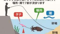 アオリイカ生態、釣り情報関連 【釣果7割が決まる】エギング完全攻略!アオリイカの「あたり」を激増させるタナ・場所・潮の秘密