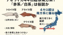 アオリイカ生態、釣り情報関連 巨大アオリイカ4kg超えは南方系?赤系・白系の俗説に迫る!その真相を徹底解剖