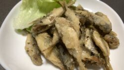 スタッフの自宅料理 ちょっと大きくなってきた「豆アジ唐揚げ」