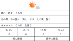 海況・天候 明日は、東からの高波で串本方面は時化、白浜方面は波の影響はないが、北西の強風
