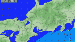 海況状況 台風9号はこのコースなら次の週末は東波になるので大丈夫(串本は除く)