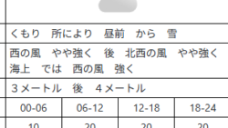 海況・天候 明日はハードな天候で昼前から雪、西の爆風、波3のち4mの予報です。