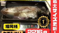 イカ釣果 本日28日 アオリイカ最大記録更新!堂々の2216g!!森の鼻でヤエン釣り