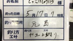 イカ釣果 5/17 (水) 元島でアオリイカ 1824gの釣果 ヤエン釣りにて