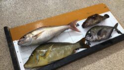グレ・チヌ、鯛系の釣果 夜釣りでぼちぼちとイサギが釣れています。小型25cmくらいでも食べれるので、持ち帰りましょう。
