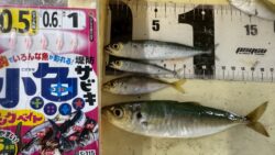 波止釣り・サーフ釣り釣果 豆アジ、イワシは8センチ、小サバは12センチ、丸アジは17センチ。4月18日金曜日のサビキ釣り。