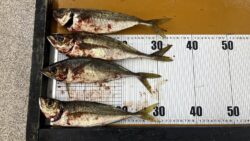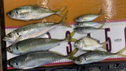 波止釣り・サーフ釣り釣果 35㎝前後の尺オーバーのアジが釣れている。田辺新芳養(はや)漁港