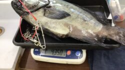 底物釣果 60cm強のタマミ イシダイ釣りの外道で竿が、海中にめり込んだそうです。
